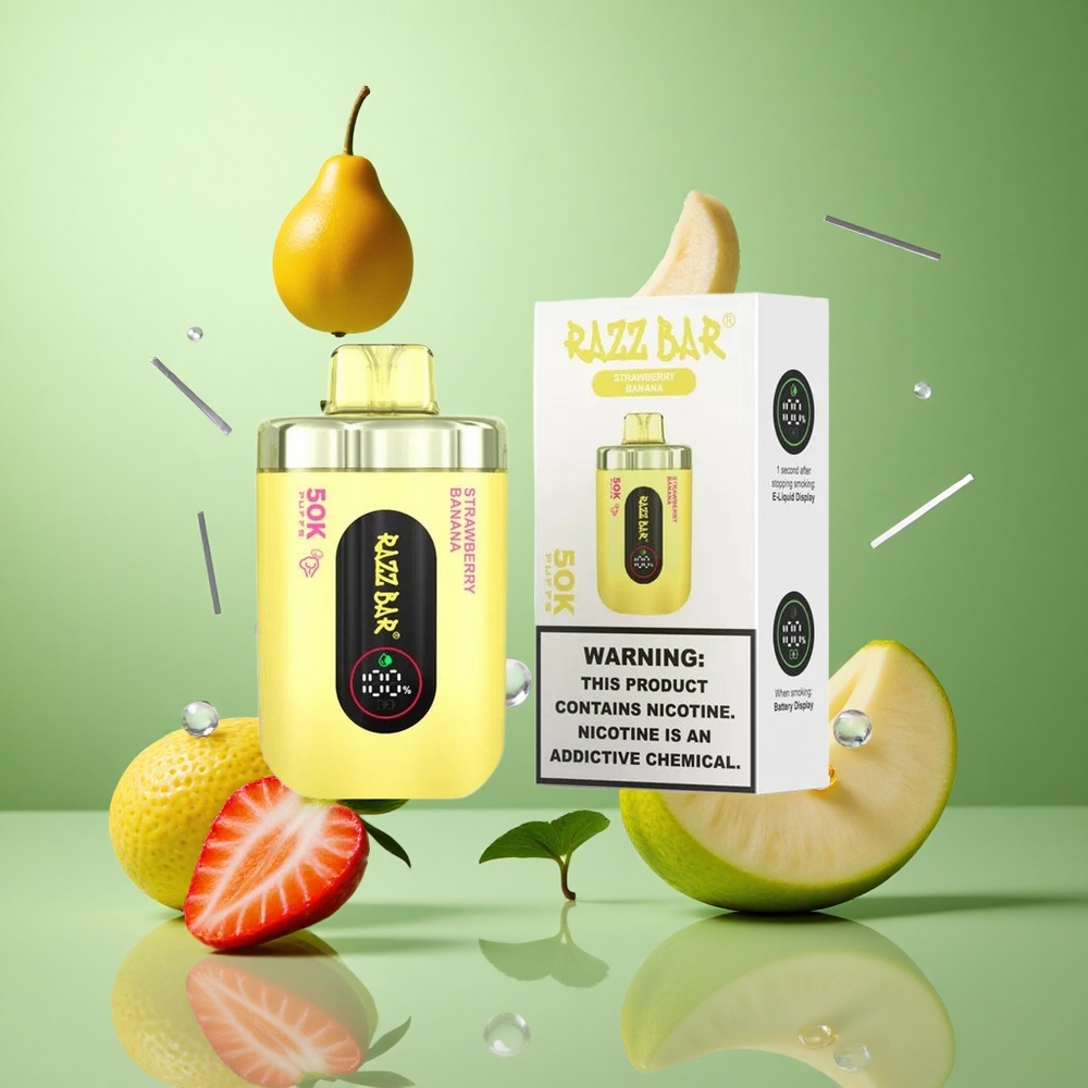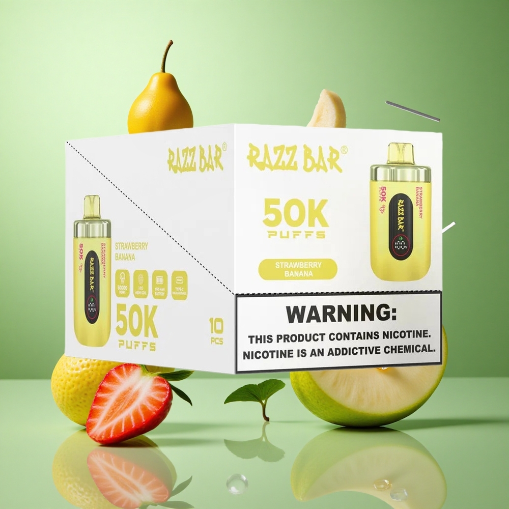 Aardbei Banaan Razz Bar 50K Puffs Wegwerp Vape 1.0 Ohm Mesh Coil Type-C Oplaadbaar