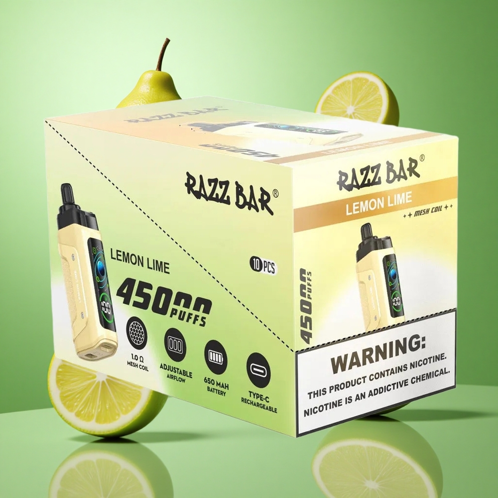 Citroen Limoen Razz Bar 45000 Puffs Oplaadbare 20 mg/ml Nicotine Sterkte