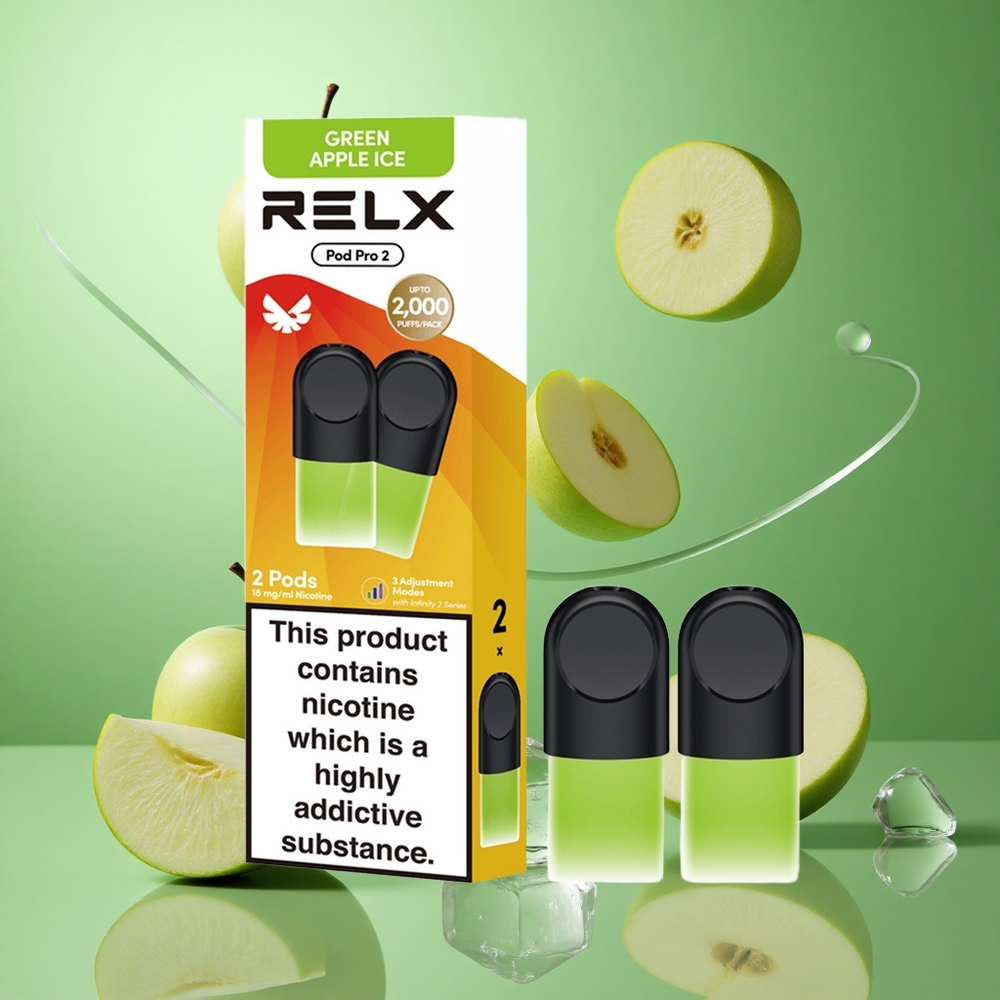 Groene Appel IJs RELX Pod Pro 2 600 Puffs 1.8% nicotine 3 spanningsstanden