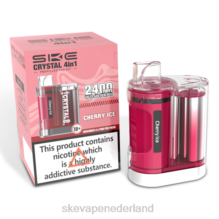 de cherry ice ske crystal 2400 4-in-1 pod-kit is een opwindende, voorgevulde pod-kit die voldoet aan de TPD-normen, ideaal voor mtl-vapen (mond-tot-long). Met een oplaadbare interne batterij van 950 mAh en een capaciteit van maximaal 2400 trekjes, is deze kit perfect voor de hele dag vapen. De kit wordt geleverd met vier peulen en elke pod biedt maximaal 600 trekjes en is voorgevuld met 2 ml nicotinezouten met een nicotinesterkte van 20 mg. met een keuze uit zes sets met peulen met dezelfde smaak of vier sets met peulen met verschillende smaken, is er voor elk wat wils.